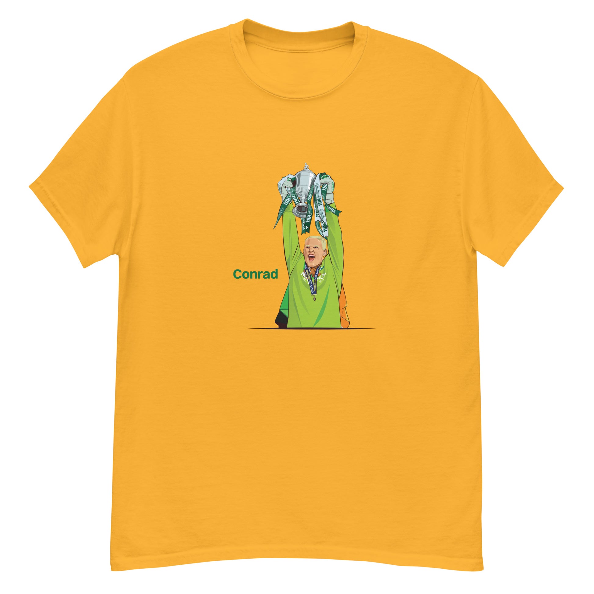 Conrad Logan. He was here for a short time. And a good time! He only made 8 appearances for the Hibees but he has a special place in the hearts of the Easter Road faithful. If you were lucky enough to have been there on that special day in 2016 you'll likely have a lot of love for Conrad. Here he is, immortalised on this cracking t-shirt.
