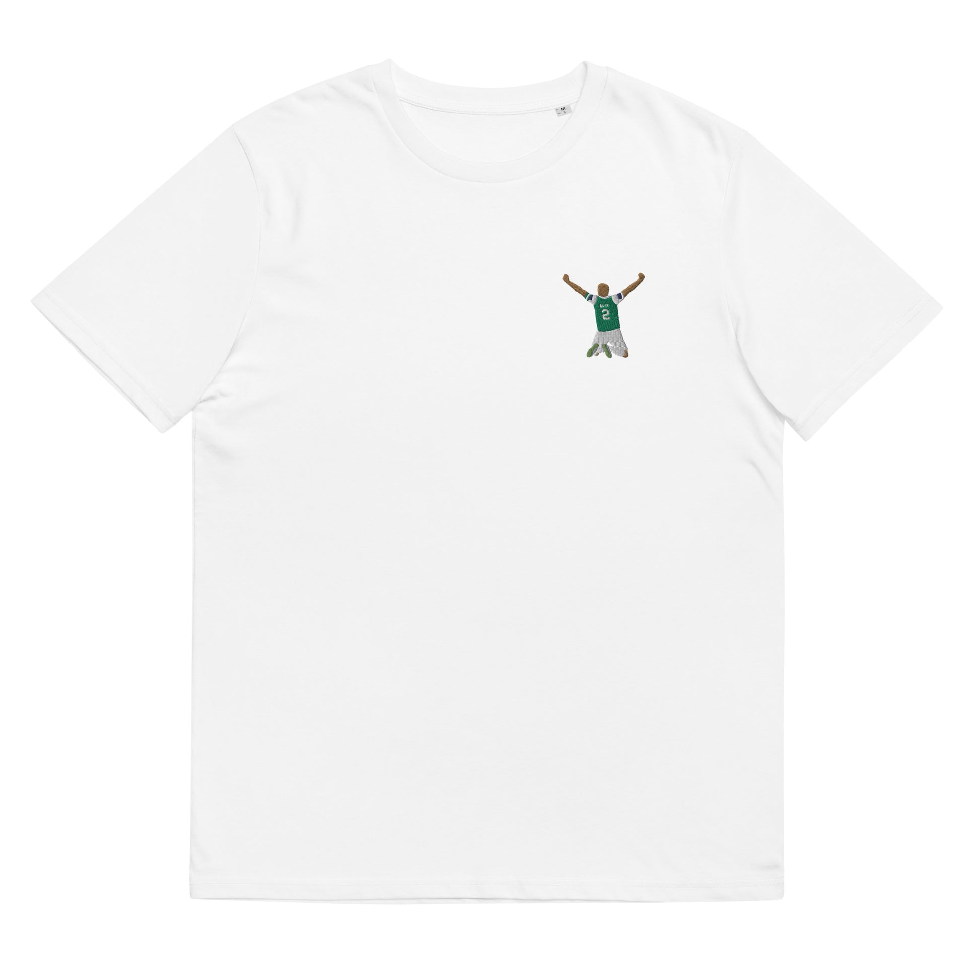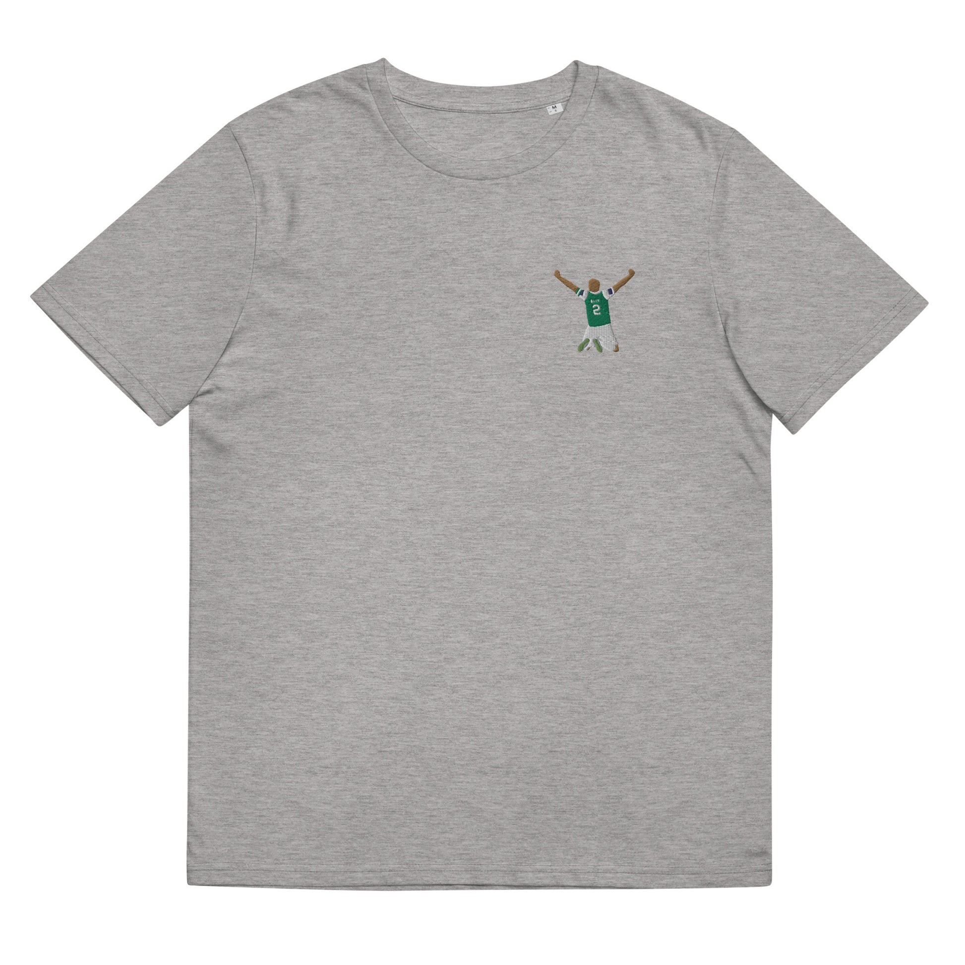 He's not exactly an unsung hero, he's known as SIR David Gray down Leith. And rightly so. In 2016 the man, the captain, scored a stoppage-time header grabbing Hibs a Scottish Cup final win for the first time in 114 years. The scenes of the Hibs fans in their rendition of "Sunshine on Leith" by The Proclaimers epitomise what football is all about for the REAL fans. David's celebration is immortalised in this fashionable, embroidered icon on this quality t-shirt. Enjoy it Hibees.