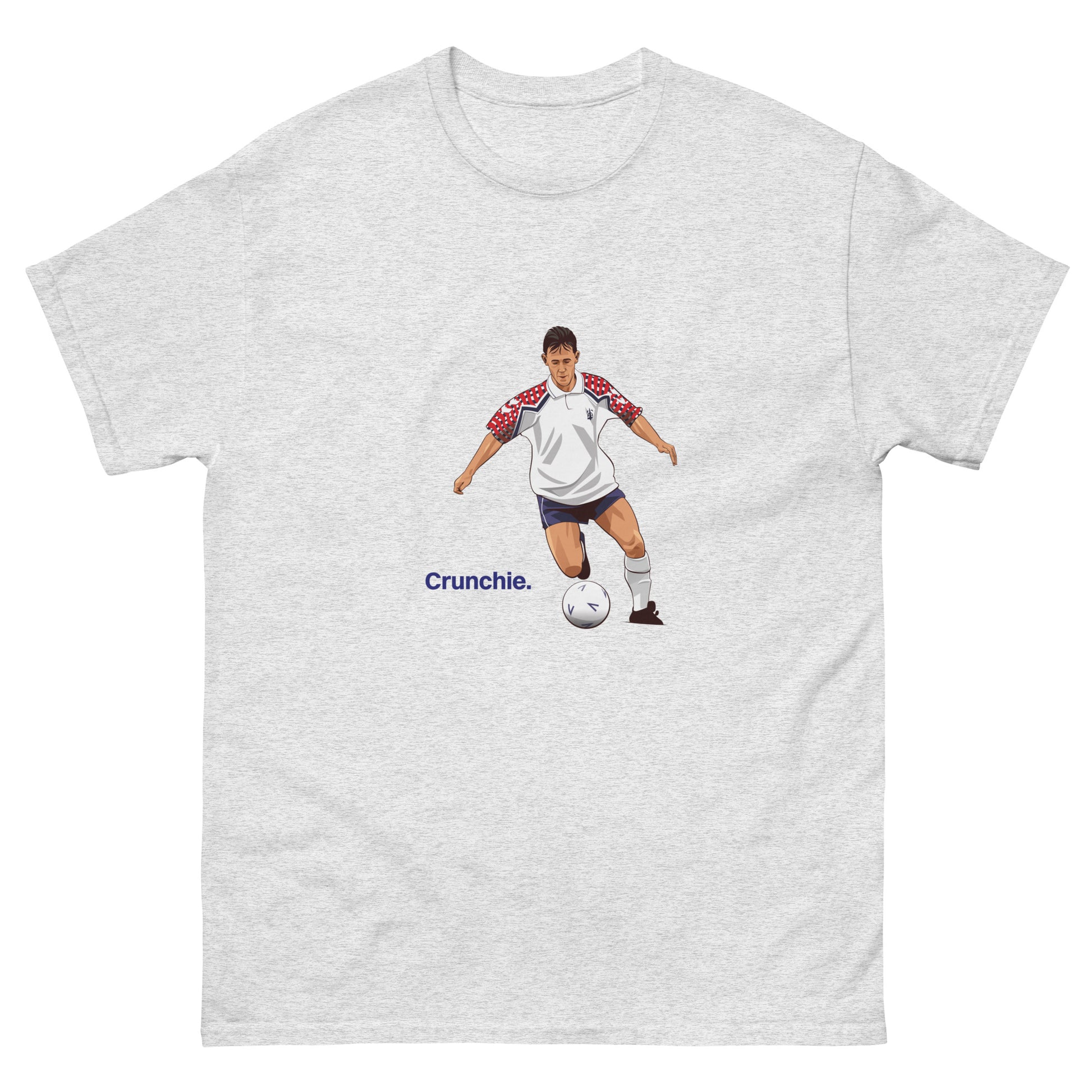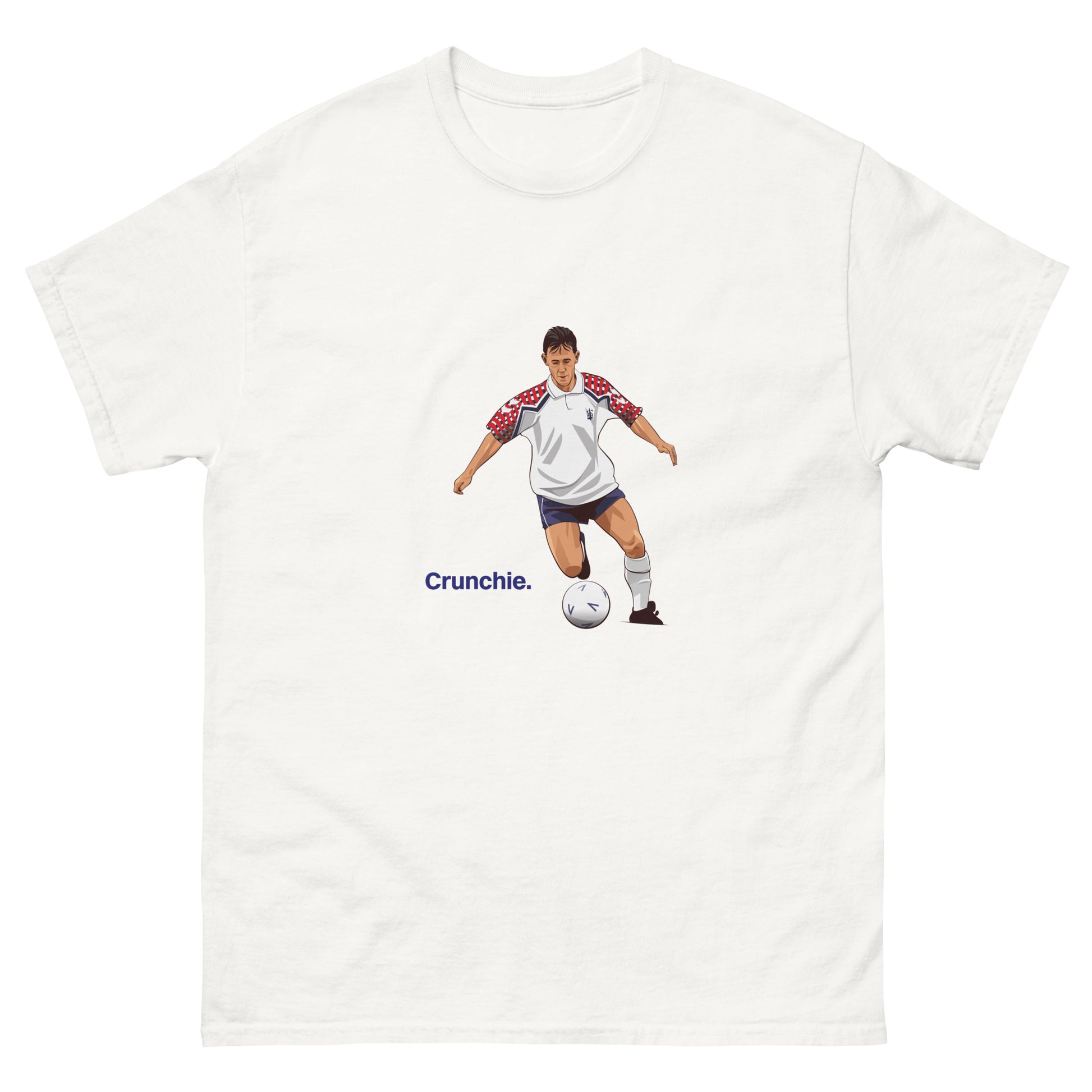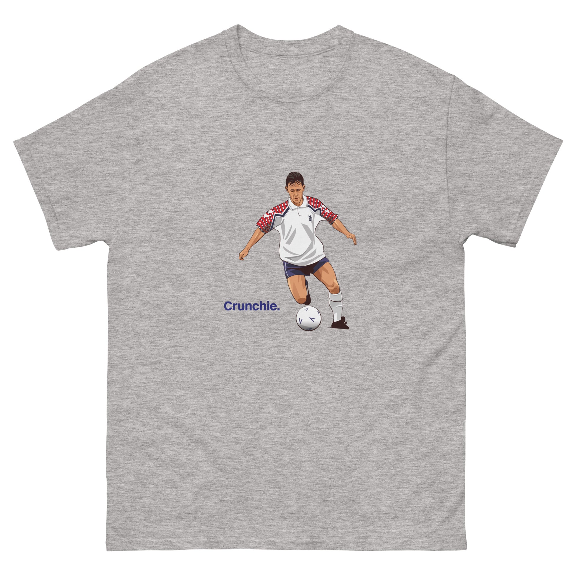 Hardly a cult hero, “Crunchie” McAllister was voted Falkirk’s “Player of the Millennium” and even has a stand named after him. He’s held in high regard by Chelsea and Hibs fans too, but it’s Falkirk who were Kevin’s team. Anyone old enough to remember seeing McAllister play can surely agree this wee guy was electric. This t-shirt captures Kevin in full flow, and is a high quality garment perfect for match day.