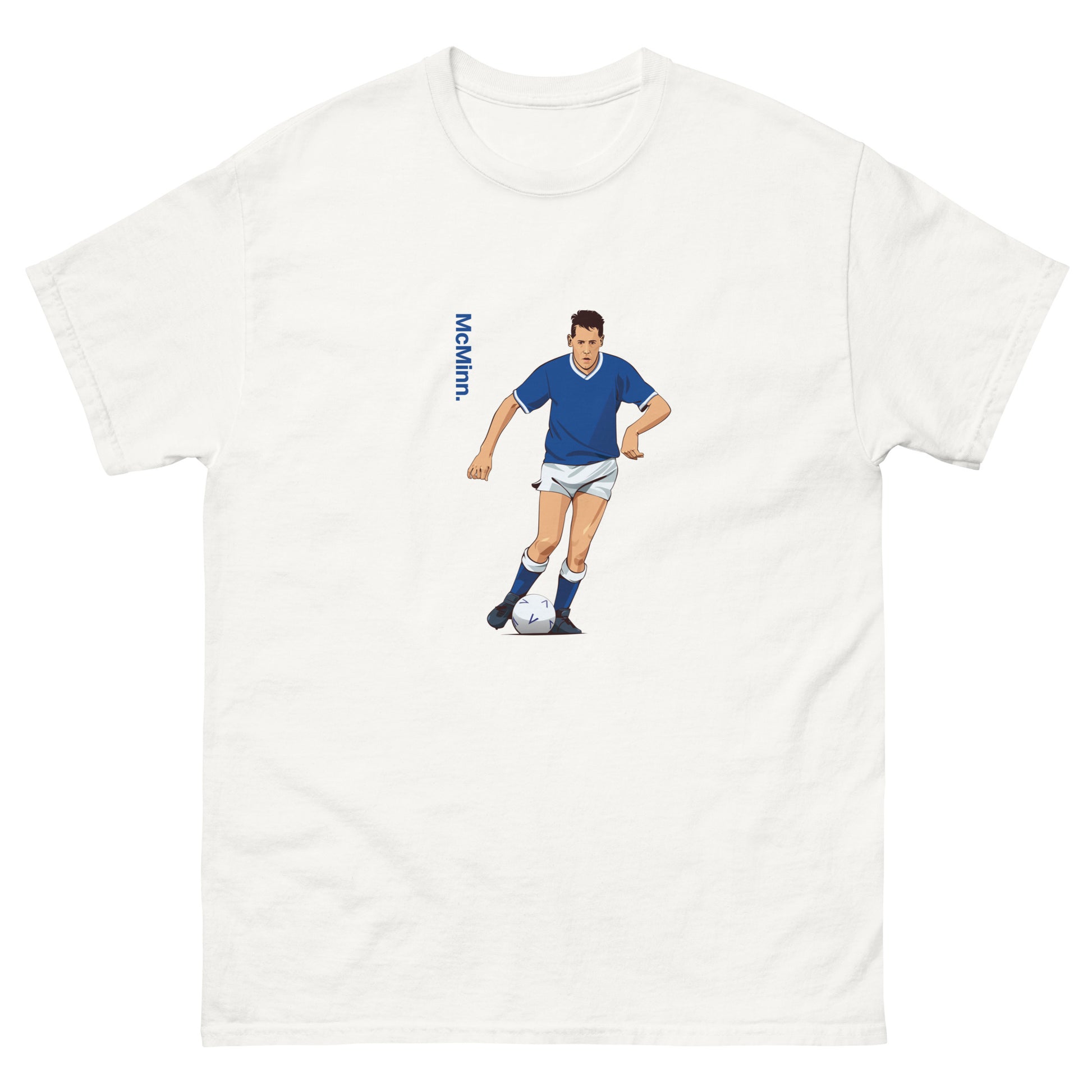 Unorthodox. That word sums up the playing style of Kevin "Ted" McMinn. He was affectionately known as The Tin Man, and you can probably see why if you look at this design! He was prone to occasional bouts of genius, and absolute calamity in equal measure. A highly relatable and times flawed figure, Ted was a much loved 'Ger. He was also highly revered at the other clubs he represented, as he notably brought a crowd of almost 34 000 supporters to his tribute match - Derby v Rangers - in 2006. Enjoy this unique, comfy, t-shirt honouring a really unique footballer.